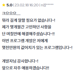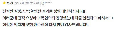 주요 서비스 채널인 크몽에서 다음과 같은 의뢰인분들의 응원을 받고 있습니다. 서비스 선택에 참고가 되시길 바랍니다.
