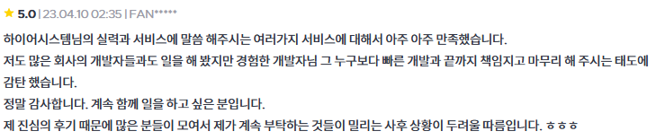 앞으로도 하이어시스템은 여러분과 함께 성장하며, 더 나은 서비스를 제공하기 위해 노력하겠습니다. 함께 성장하는 파트너, 하이어시스템을 지금 바로 이용해 보세요. System higher, Biz higher